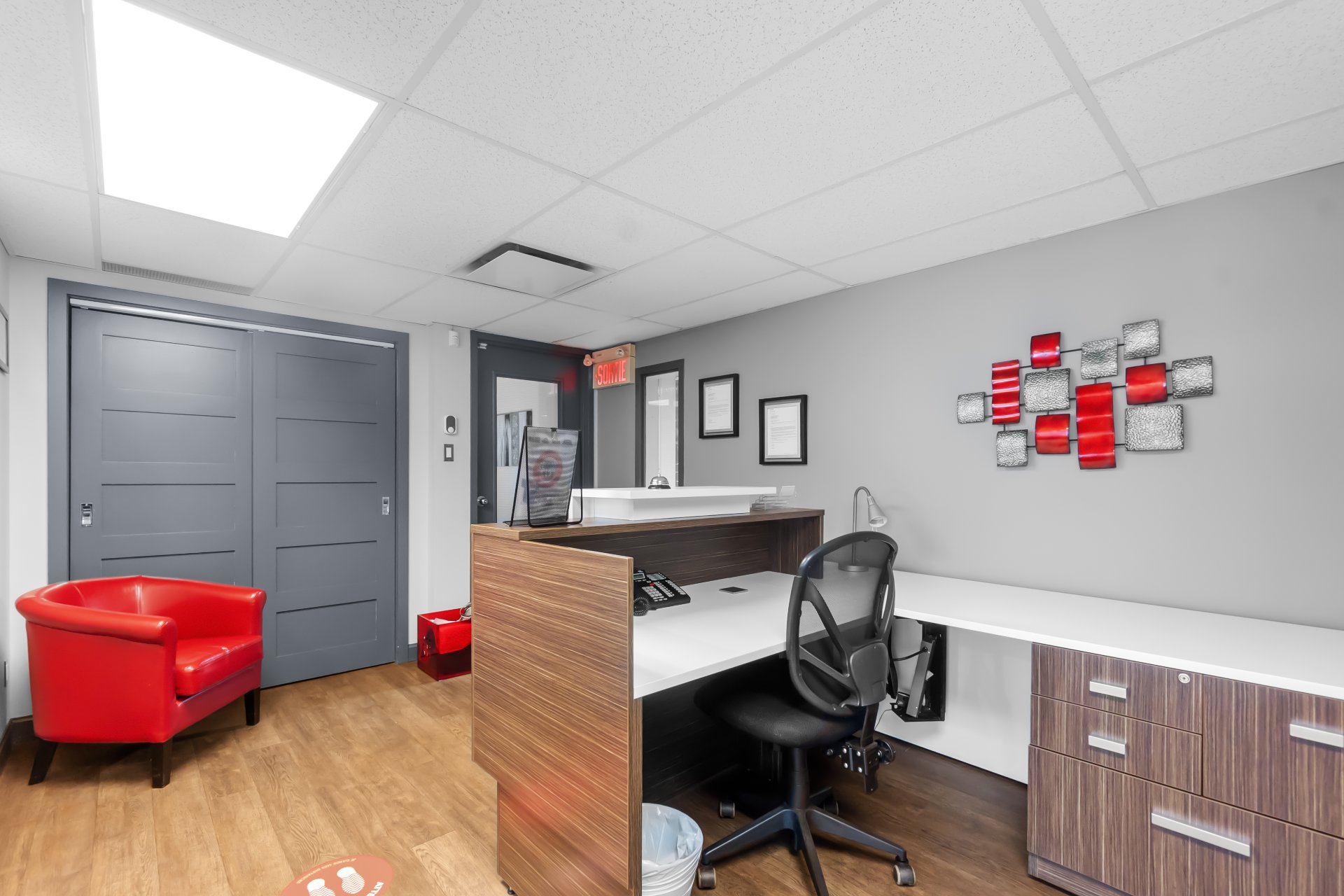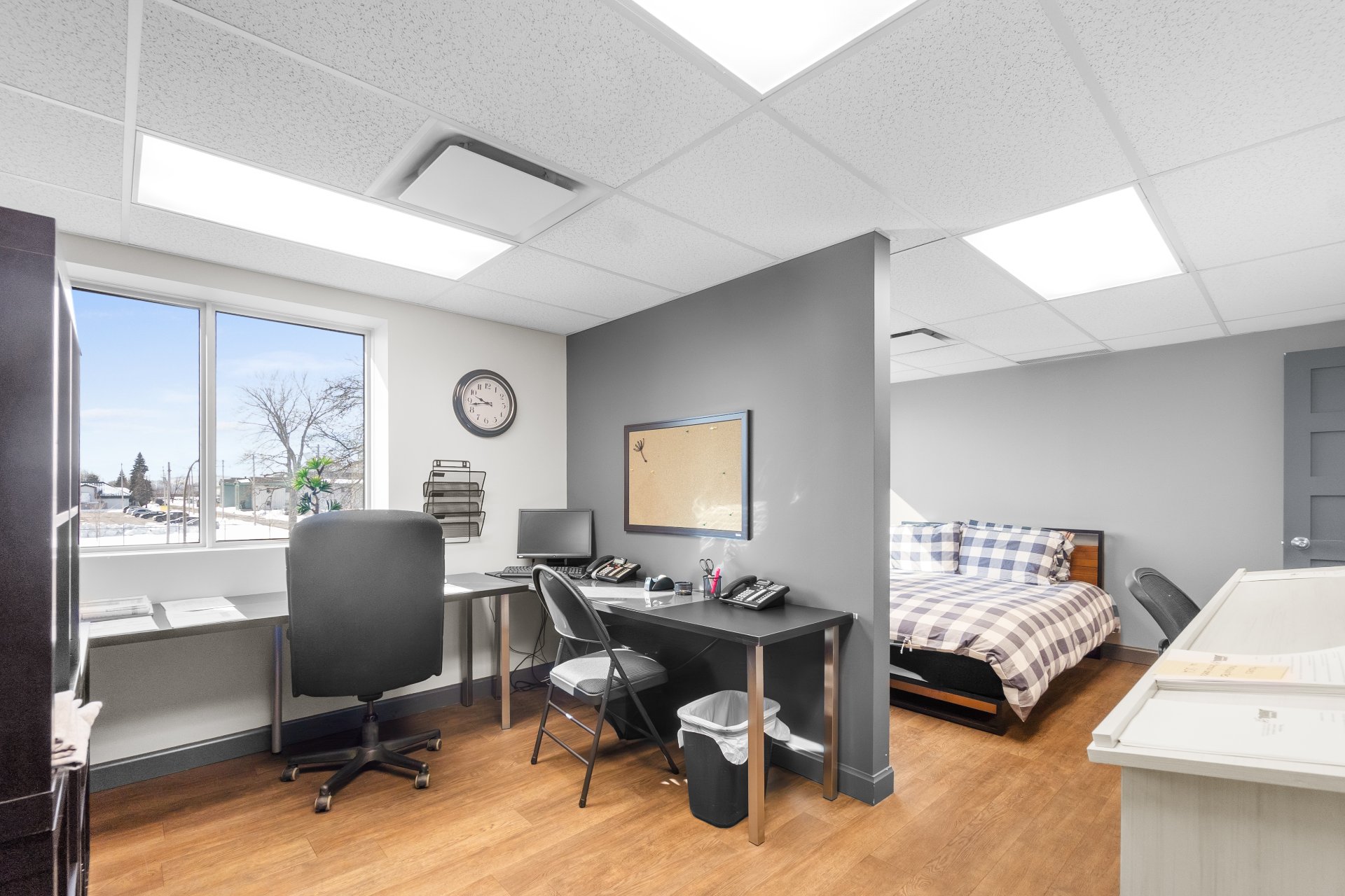 Espace de bureau moderne clé en main, conçu pour offrir confort et productivité. Comprend une aire de réception, une salle de conférence entièrement aménagée, 3 bureaux fermés et une toilette privée. Grand espace polyvalent, idéal pour les professionnels ou les équipes en croissance. Excellente accessibilité aux grandes autoroutes, dont l'Autoroute 25 et le Tunnel Louis-Hippolyte-La Fontaine, ainsi qu'un accès facile au transport en commun et au stationnement sur rue. Situé dans un secteur dynamique entouré d'entreprises et de commodités. Prêt à occuper!